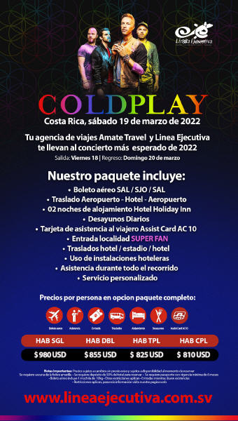 Coldplay en ciudad de San José Costa Rica, Línea Ejecutiva ha preparado especialmente para ti un espectacular que lo incluye todo!!!