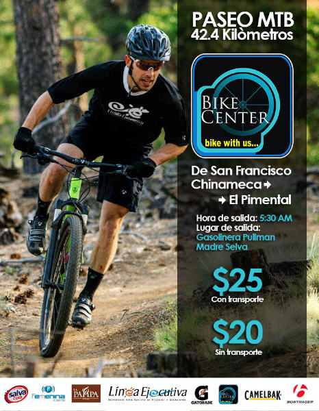 Serán 42.4 Kms de mucha emoción, adrenalina y diversión. Es una ruta turística y pedaleable para TOD@S, el nivel de dificultad es mínimo. En la mayor parte del recorrido nos encontraremos con buenos descensos!!... sin faltar los excelentes paisajes que siempre disfrutamos en los paseos de MTB.
